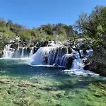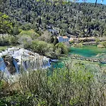 A Szent Jakab-katedrális 6 km-es távolságra található a 40 m^2-es apartmantól, a Split repülőtér pedig 55 km-re. A tengerparti apartman egy 25 perces gyalogútra fekszik a Water Park Solaris vízi vidámparktól.